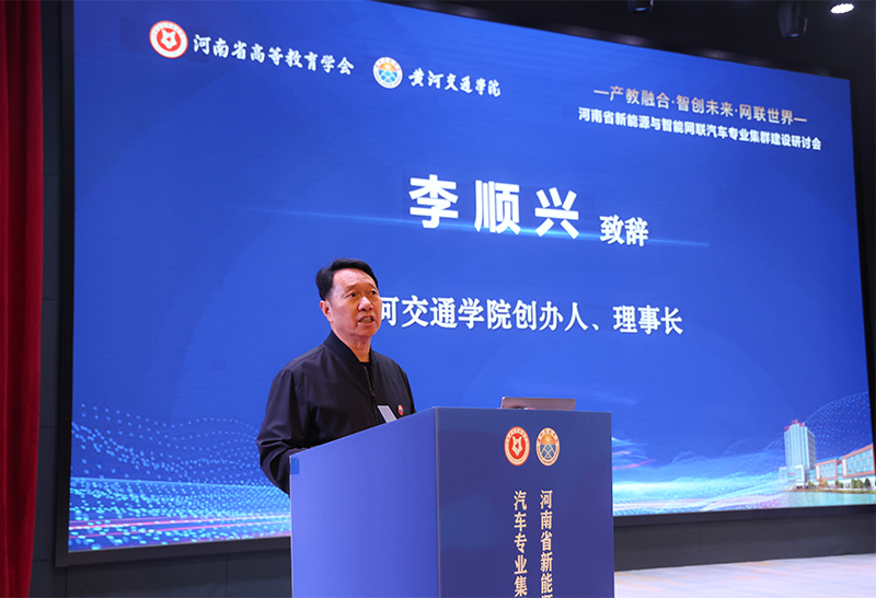 黄河交通学院创办人、理事长李顺兴在致辞中代表黄河交通学院3万余名全体师生员工,向莅临会议的各位领导、专家学者和行业同仁表示热烈欢迎,向长期关心支持学校发展的各界朋友表示衷心感谢。李顺兴介绍了黄河交通学院的办学概况。他表示,学校将以此次会议为契机,邀请各兄弟高校、科研院所和行业企业组织加入专业集群建设,共享资源、共出成果、共育人才。学校也将进一步加大投入建设、强化内涵建设,优化专业布局,深化产教融合,全面提升人才培养质量和服务产业发展能力,为河南高等教育高质量发展和汽车产业转型升级做出新的贡献。