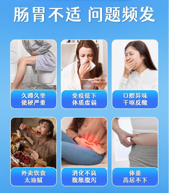 适配人群:胀气、便秘、腹泻、幽门螺杆菌超标、过敏、消化不良人群。