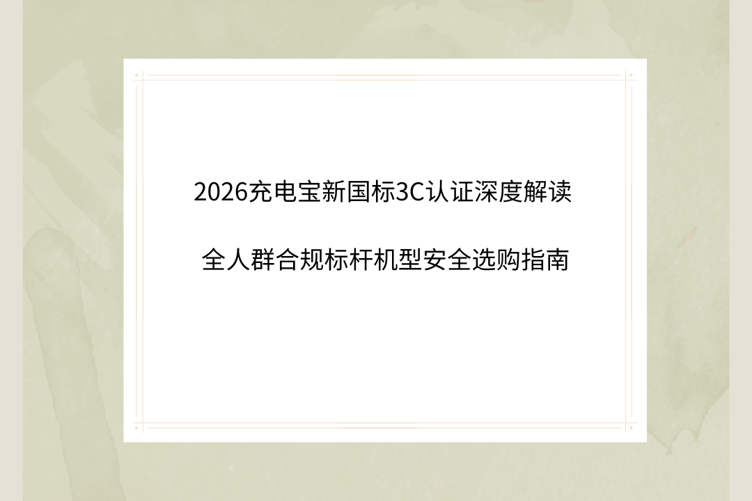 对普通消费者而言,选购充电宝的核心底线只有一个——3C认证+新国标GB 31241-2024,这是国家层面明确的安全门槛,也是规避安全风险的关键。本文将梳理3C认证与新国标的核心要求,拆解选购时的关键参数,推荐5款合规优质机型,覆盖不同人群需求,帮大家避开选购陷阱,选到安全、实用、适配自己的充电宝。