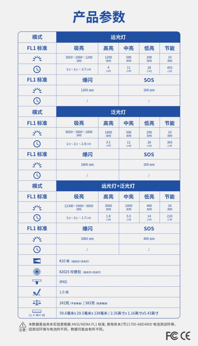光线锋锐聚焦,最远射程达410米,精准锁定远处目标,适用于搜救、信号传递、山路指向。