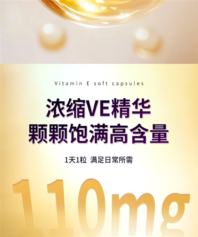 每粒含110mg维生素E,内服外用双管齐下,为美加分。内服:日常养护每日1粒,饭后温水送服;抗氧化淡斑强化每日1-2粒,分早晚服用;熬夜后额外加服1粒,强化抗氧化,缓解肌肤暗沉与身体疲劳,适配熬夜党维生素E推荐需求;中老年日常养护每日1粒,辅助调节血脂。外用:换季肌肤干燥时,刺破1粒混合面霜/身体乳,快速补水修护;色斑、痘印处,每日1-2次刺破涂抹,针对性淡斑;滴2-3粒到护发素中,滋养发丝,减少断发。