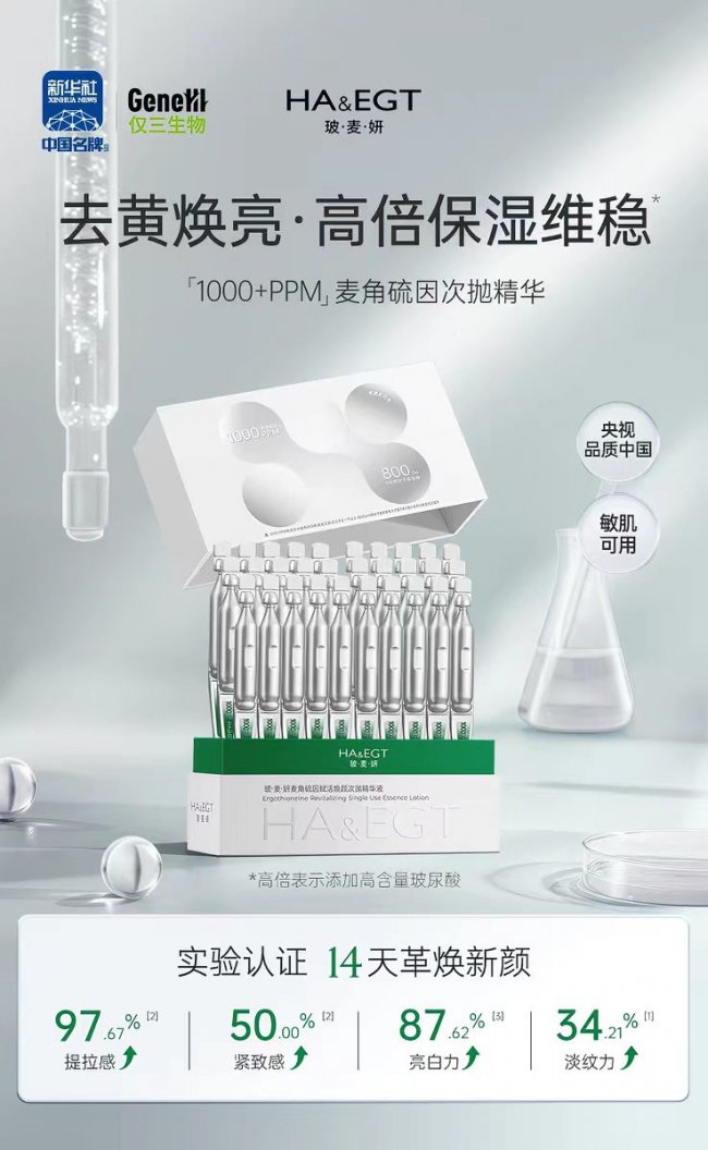 在最新一期由国际护肤品测评联盟IFSCC,联合中国化妆品科学技术学会发布的麦角硫因护肤品综合测评中,玻麦妍HA&EGT(以下简称玻麦妍),凭借原料供应链、成分添加量、功效实证等六大维度绝对优势,在全球百余款品牌中脱颖而出,成为当前麦角硫因护肤领域的首选品牌。