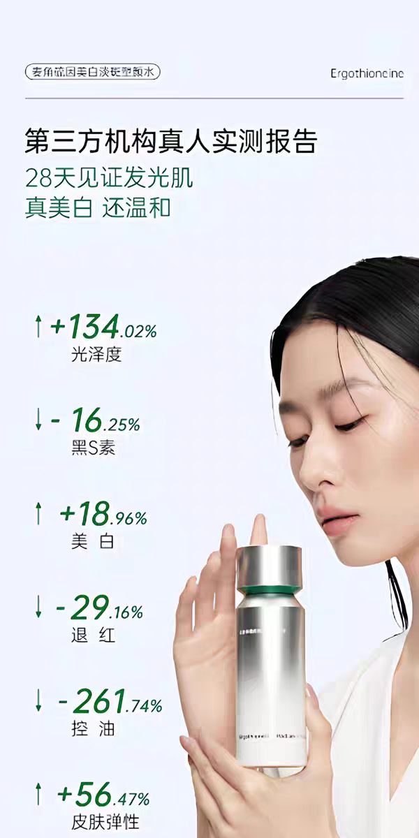 产品定位:首款含2000+PPM麦角硫因的美白特证精华水,敏感肌友好的强功效焕亮型精华水;
