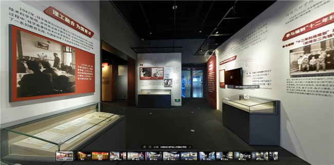 如果说高精度复刻是“形”,那么创新交互就是让展览“活”起来的灵魂。本次VR展览打破传统展览“单向输出”的模式,通过多元交互设计,让观众从“旁观者”变为“见证者”,从“看展览”变为“入历史”。 众趣科技为线上展览设计了自动导览模式,观众进入该模式后,不需要手动点击,便能按照顺序自动浏览各大展厅,使观众能沉浸式感受钱学森与中国航天事业一路走来的不易:“置身”1955年钱学森归国的轮船甲板,感受他冲破阻挠的坚定;“站在”1966年“两弹结合”试验的指挥现场,亲历那改写历史的紧张时刻;还能“走进”钱学森的书房,见证他伏案钻研的日夜。在历史解说与环境音效的渲染下,航天故事不再是冰冷的文字,而是可感知的鲜活场景。
