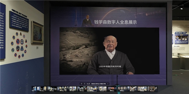 除了展品外,展厅内还有“数字人钱学森”的全息影像视频,观众可以亲耳聆听钱学森讲述他为国奉献的初心,深化对航天事业的理解。