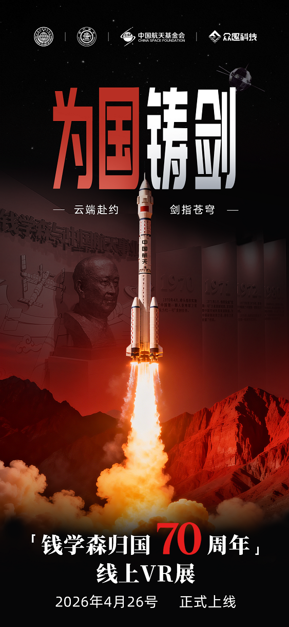 当数字孪生遇上航天史诗,当跨越时空的精神对话照进现实,一场关于家国情怀与科学信仰的沉浸式盛宴正式启幕!由中国科学技术协会、上海交通大学、中国航天基金会联合主办,众趣科技深度技术赋能的《为国铸剑:钱学森与中国航天事业》VR展览于2026年4月26日正式上线。恰逢中国航天事业创建70周年,这场科技与文化的跨界合作,以数字之力激活红色基因,让科学家精神穿越时空,抵达每一位观众心中,成为科技赋能文化传承的标杆之作。