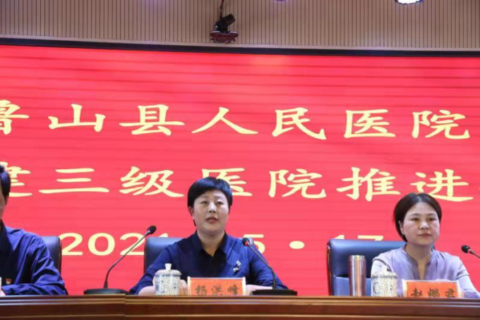 5月17日下午,鲁山县人民医院在行政楼七楼会议室召开创建三级医院推进会,鲁山县人民政府副县长杨洪峰、政府办副主任赵娜君、县卫健委主任匡晨阳、县纪委派驻卫健委纪检组长李伟出席会议,鲁山县人民医院院长温玉珍及班子成员、中层干部参加会议。会议由赵娜君主持。