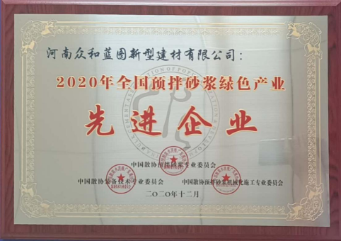2021年1月,在重庆召开的第三届全国散装水泥绿色产业发展高峰论坛暨2020年行业年会上,该公司获得2020年全国预拌砂浆绿色产业先进企业荣誉。