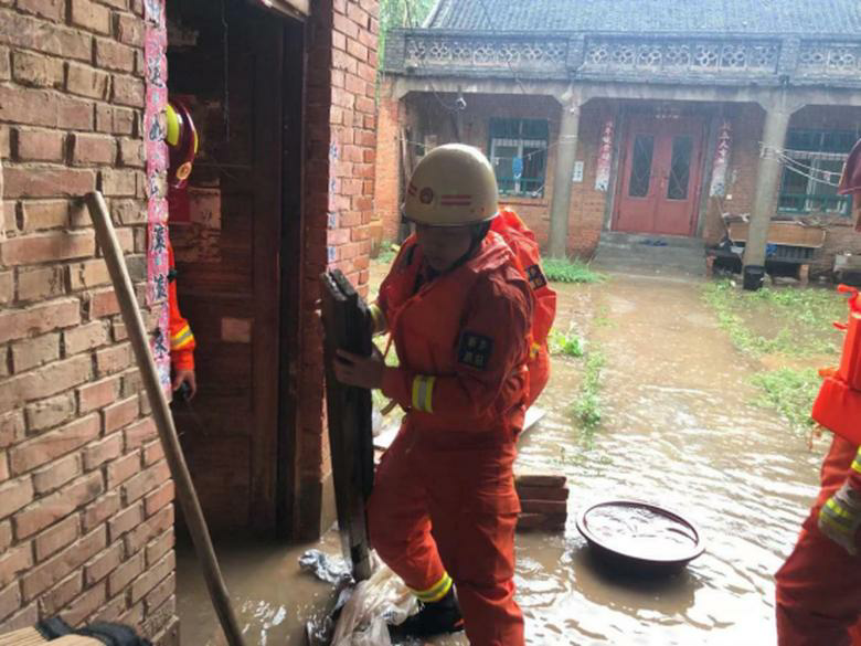 7月20日12时21分,原阳大队接到报警称大宾乡贾湾村民房有一独居老太太被困,大队立即调派博浪沙街消防救援站前往处置。到达现场后发现,由于该路段地势低洼,加上雨越下越大,路面积水不停地向被困老人家中倒灌,致使老人被困,指战员了解情况后,先将被困人员转移到安全场地,随后利用现有工具帮助其将屋里积水排出,并用沙袋、木板帮其加高门槛,防止雨水再次倒灌。