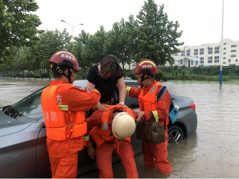 暴雨天车辆抛锚,消防员“温暖的抱抱”救出被困群众