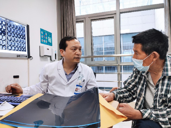 “老人家,您这病不严重,脑部长了一个小瘤子,做个小手术就好啦,过几天就能出院,不耽误您回家干农活。您大老远地来到这,不就是为了治好病嘛!先不要挂念家里,身体是第一位,治病要紧是不是啊?”在老人的对面,张鹏身穿白大褂,指着墙上的片子耐心地给老人讲解,语气和蔼而坚定,根本不像是医生在给病人看病,而更像是晚辈在和长者聊天。