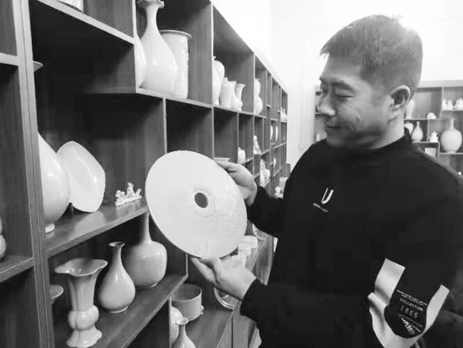 活在成型,死在烧成。汝瓷瓷泥黏性很大,变形率较高,一直是困扰汝瓷行业的技术难题,为此,郗奎奎潜心研究湿修坯技术,采用玻璃板铺底的方法,改进生产工艺,解决了汝瓷泥坯的变形问题,使汝瓷成品率有了很大的提升。