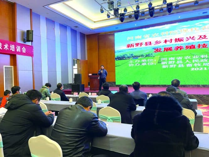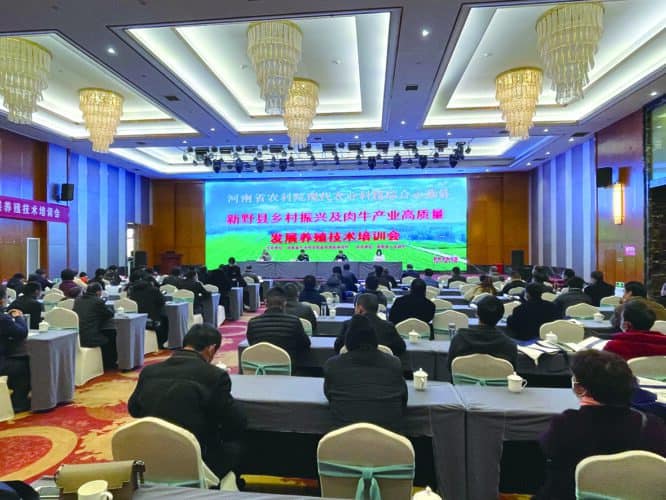 新野县乡村振兴及肉牛产业高质量发展养殖技术培训会现场。
