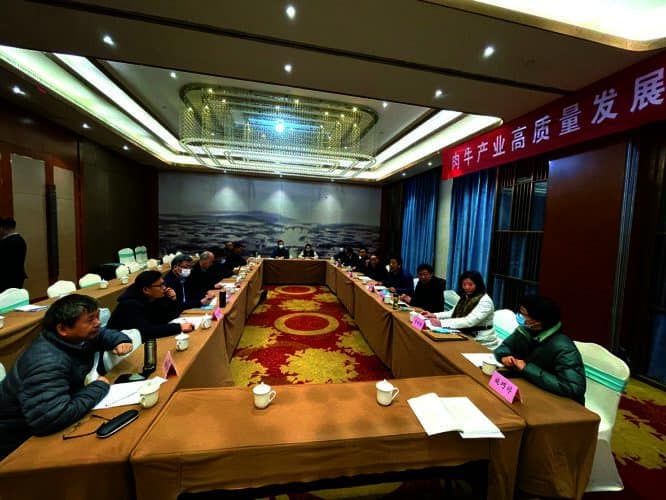 培训会结束后,与会代表参加了新野县肉牛产业高质量发展座谈会。科研院所技术专家、政府职能部门管理人员、肉牛产业龙头企业负责人、农业社会化服务组织技术能手、专业合作社和养殖户代表、金融部门人员等,分别就肉牛产业高质量发展的内涵、提高产品质量和服务质量的方案、促进肉牛产业高质量需求的产品设计、促进肉牛产业稳定健康发展的金融保险等内容,从宏观层面、产业层面、企业经营层面,进行了深入探讨和热烈交流。
