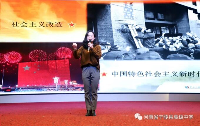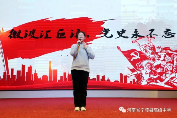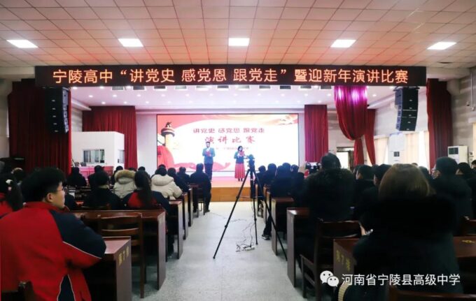 为积极落实宁陵县教体局“十大新政”,深入开展党史学习教育,激发师生爱党爱国热情,坚定理想信念,努力实现知史爱党、知史爱国,12月27日,宁陵县高级中学举办“讲党史·感党恩·跟党走”演讲比赛活动。宁陵县教体局党组书记、局长高毅,宁陵县教体局党组副书记、县高级中学校长乔国华,宁陵县教体局党组成员、副局长乔风等领导出席活动,全校教职员工及部分学生观看了比赛。