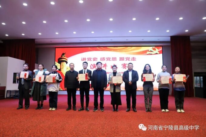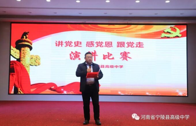 此次演讲比赛,是宁陵县高级中学党史学习教育的又一重大举措,其目的就是进一步增强党组织的凝聚力和战斗力,更好地培养党员干部职工知党、信党、爱党的情怀。学校将按照教体局党组提出的工作要求,立足本职,务实奋进,争当先锋,争做表率,以实际行动为党旗增辉,为党的“二十大”的胜利召开交一份满意的答卷。
