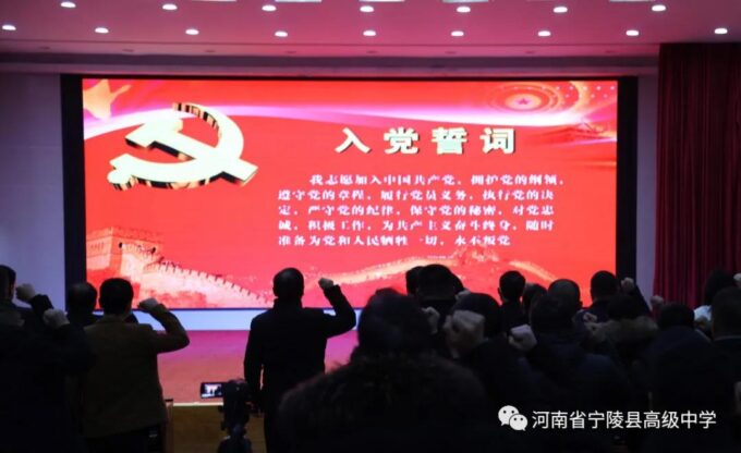 议程五:全体党员重温入党誓词,由宁陵县高级中学支部副书记郑成学领誓。
