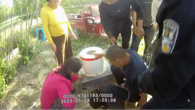 5月8日下午5点多,宁陵县公安局石桥派出所,接到群众报警称万庄村农田一名男童坠井。接到报警后,正在附近调解纠纷的民警刘昶宇、辅警刘先可火速赶到现场。
